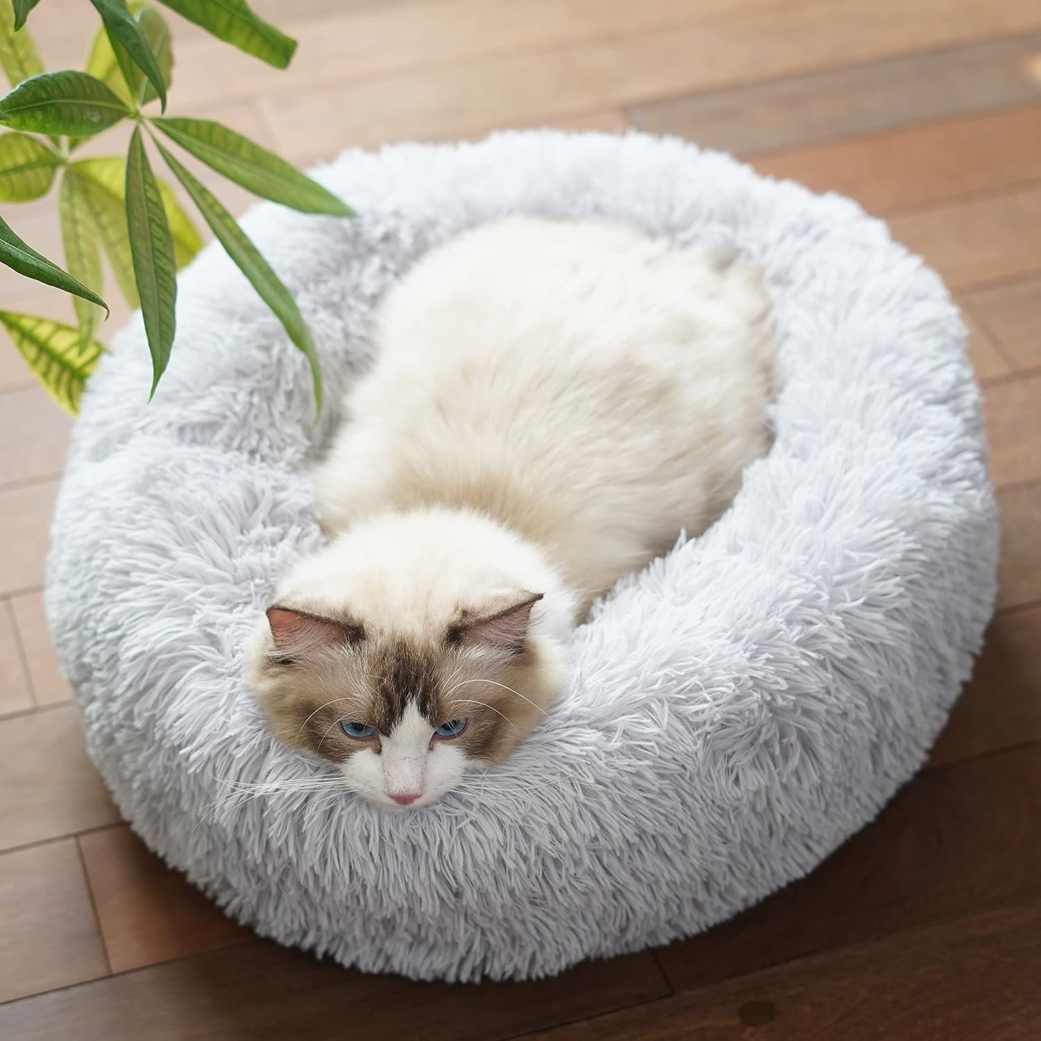 Plush Pet Round Bed – 27.56-inch Washable Round Dog Cat Bed